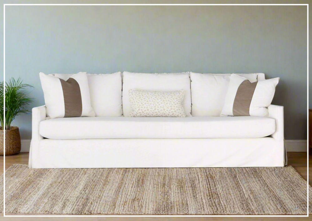 The Universal Brooklyn Fabric Sofa offers a clean and inviting aesthetic, designed to enhance any living space. Upholstered in Monique Linen, this sofa boasts a subtle texture that complements its neutral white hue, making it a versatile addition to various decor styles. The soft linen fabric adds comfort, while the durable construction ensures long-lasting use. Whether you're relaxing with a book or hosting guests, this sofa provides ample seating with a modern yet timeless design.