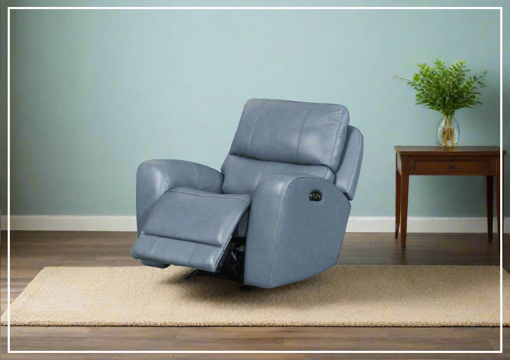 Add a touch of luxury to your living space with the Bristol Power Blue Leather Glider Recliner by Gio Italia Home. Designed for advanced comfort and functionality, this recliner is upholstered in premium top-grain leather that exudes sophistication. With a power reclining system and an adjustable power headrest, you can effortlessly find your perfect position for relaxation. The lay-flat mechanism provides enhanced support, making it ideal for lounging. Plus, the integrated USB port keeps your devices charged and accessible.