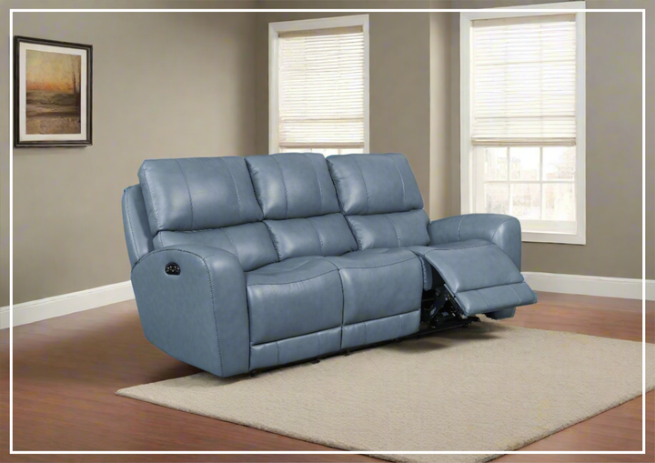 Enhance your living space with the Bristol Power Reclining Leather 3-Seater Sofa by Gio Italia Home, a blend of elegance and ultimate comfort. Upholstered in luxurious blue top-grain leather, this sofa makes a sophisticated statement in any room while offering exceptional functionality. The advanced power reclining and power headrest features allow you to customize your comfort at the push of a button, while the lay-flat mechanism provides full-body support for the ultimate relaxation experience. Equipped with a convenient USB charging port, this sofa ensures your devices stay powered up, so you can stay connected without leaving your seat.
