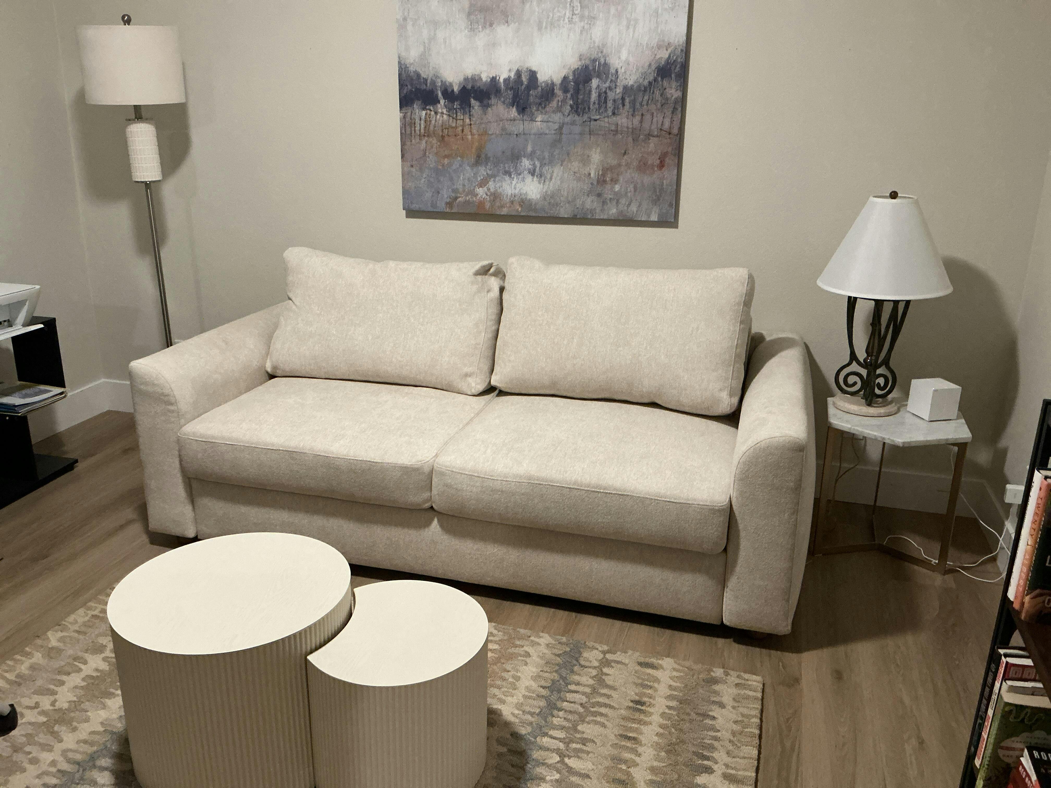 The NEAH sofa sleeper features a mattress that measures 7-8 inches and utilizes our innovative Double Spring Comfort Construction. This design ensures optimal comfort whether you're using it as a sofa or a bed, comparable to the feel of a pocket coil innerspring mattress.