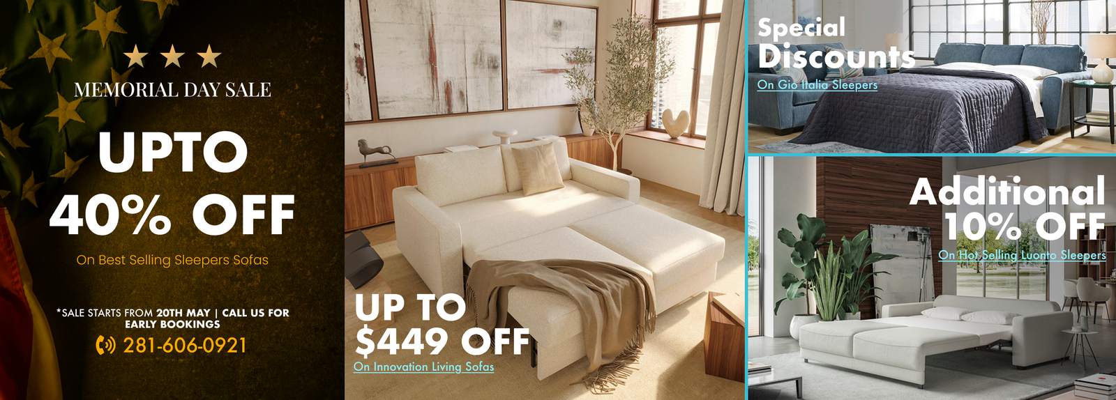 We have some exciting offers on sofa beds that are literally going to bring your jaw down. The sale starts from 20th May. You can call 281-606-0921 for "Early Bookings.