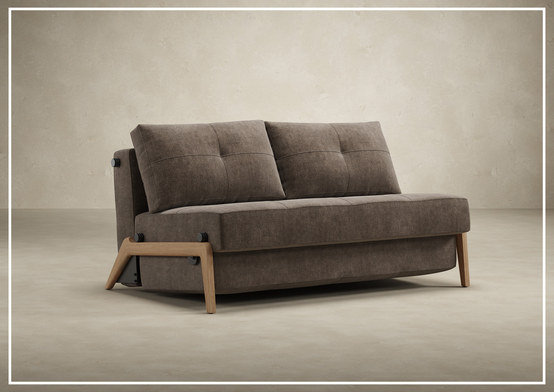 In addition to its comfort and functionality, the Cubed sofa bed is designed to maximize space efficiency. When transformed into a bed, the feet automatically extend, allowing for a smooth setup without the need for manual adjustments. A hidden bedding box located beneath the seat offers convenient storage for blankets and linens, keeping everything organized and within reach. With its sleek chrome legs and minimalist design, this sofa bed provides a modern touch that fits perfectly into urban living spaces.